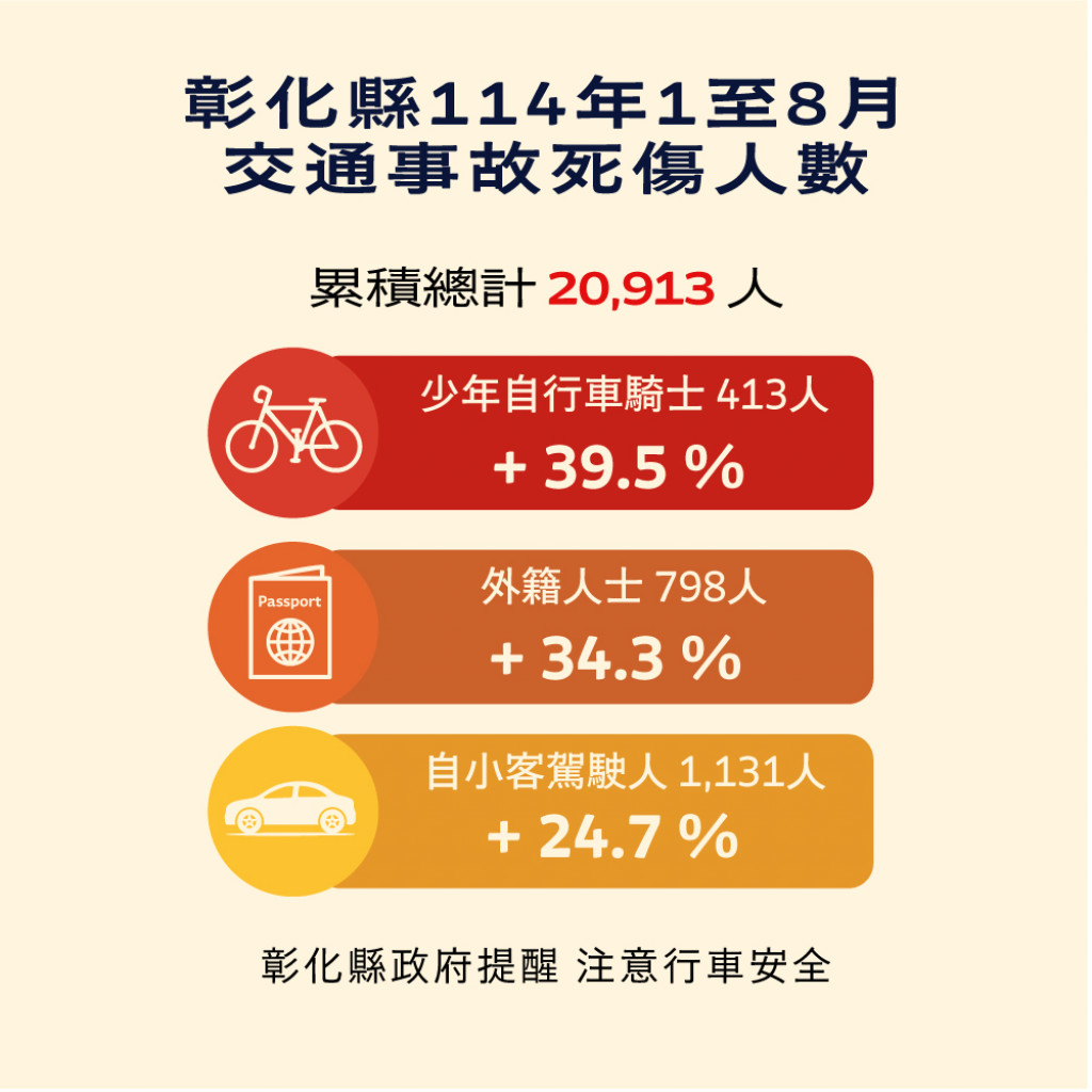 五、附件為「114年1-8月全國道路交通事故統計、彰化縣交通
